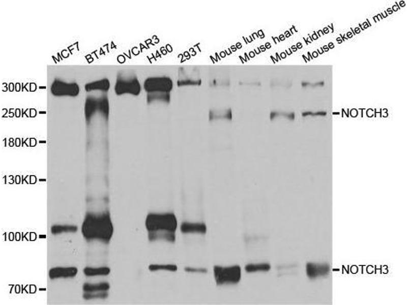 NOTCH3 适用: 人 WB, IHC 宿主: 兔 Polyclonal unconjugated