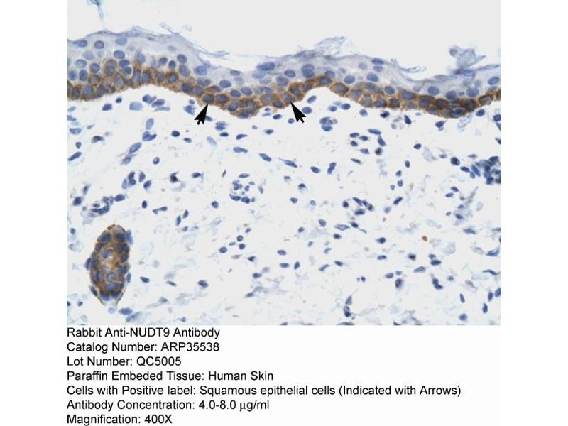 The protein encoded by this gene belongs to the Nudix hydrolase family. Nudix boxes are found in a family of diverse enzymes that catalyze the hydrolysis of nucleoside diphosphate derivatives. This enzyme is an ADP-ribose pyrophosphatase that catalyzes the hydrolysis of ADP-ribose to AMP and ribose-5-P. It requires divalent metal ions and an intact Nudix motif for enzymatic activity. Alternatively spliced transcript variants encoding different isoforms have been found for this gene. [provided by RefSeq, Oct 2011].