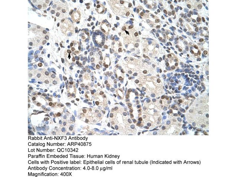 This gene is one member of a family of nuclear RNA export factor genes. Common domain features of this family are a noncanonical RNP-type RNA-binding domain (RBD), 4 leucine-rich repeats (LRRs), a nuclear transport factor 2 (NTF2)-like domain that allows heterodimerization with NTF2-related export protein-1 (NXT1), and a ubiquitin-associated domain that mediates interactions with nucleoporins. The LRRs and NTF2-like domains are required for export activity. Alternative splicing seems to be a common mechanism in this gene family. The encoded protein of this gene has shortened LRR and ubiquitin-associated domains and its RDB is unable to bind RNA. It is located in the nucleoplasm but is not associated with either the nuclear envelope or the nucleolus. [provided by RefSeq, Jul 2008].