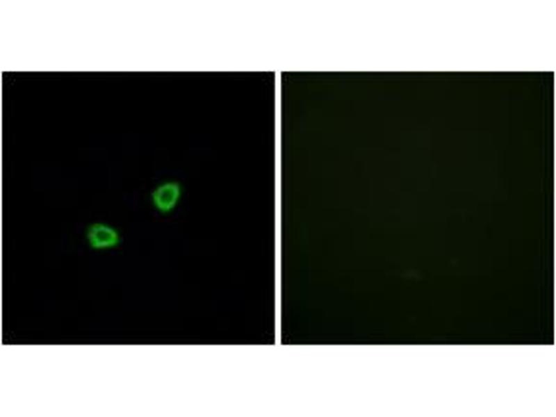 Olfactory receptors interact with odorant molecules in the nose, to initiate a neuronal response that triggers the perception of a smell. The olfactory receptor proteins are members of a large family of G-protein-coupled receptors (GPCR) arising from single coding-exon genes. Olfactory receptors share a 7-transmembrane domain structure with many neurotransmitter and hormone receptors and are responsible for the recognition and G protein-mediated transduction of odorant signals. The olfactory receptor gene family is the largest in the genome. The nomenclature assigned to the olfactory receptor genes and proteins for this organism is independent of other organisms. [provided by RefSeq, Jul 2008].