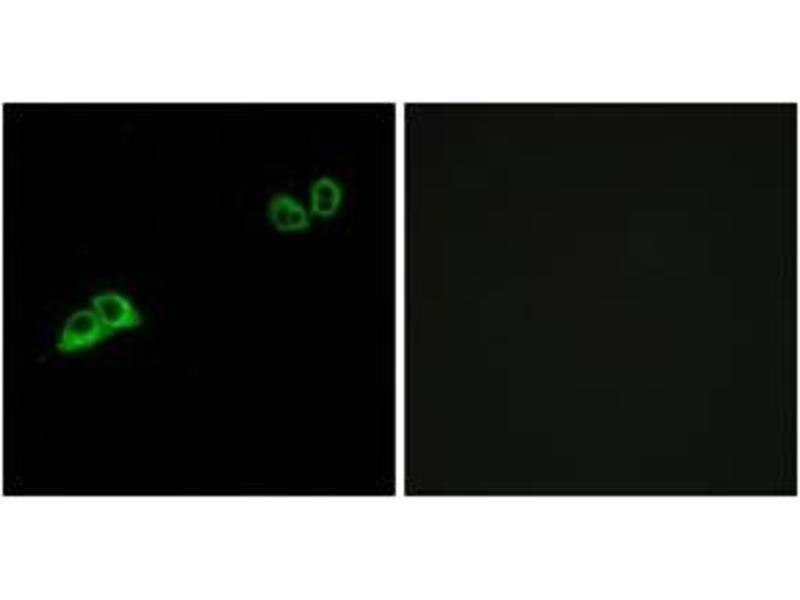 Olfactory receptors interact with odorant molecules in the nose, to initiate a neuronal response that triggers the perception of a smell. The olfactory receptor proteins are members of a large family of G-protein-coupled receptors (GPCR) arising from single coding-exon genes. Olfactory receptors share a 7-transmembrane domain structure with many neurotransmitter and hormone receptors and are responsible for the recognition and G protein-mediated transduction of odorant signals. The olfactory receptor gene family is the largest in the genome. The nomenclature assigned to the olfactory receptor genes and proteins for this organism is independent of other organisms. [provided by RefSeq, Jul 2008].