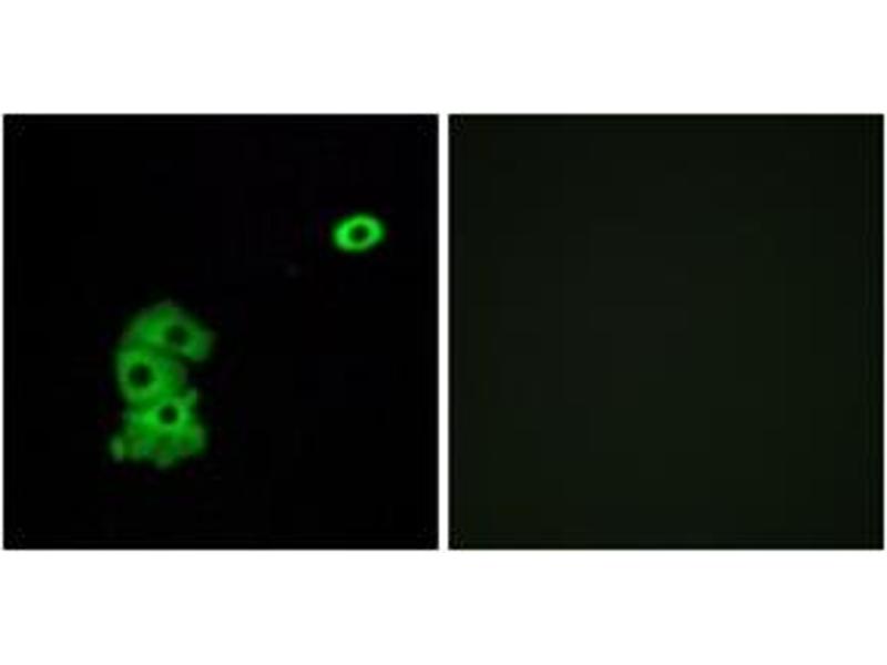 Olfactory receptors interact with odorant molecules in the nose, to initiate a neuronal response that triggers the perception of a smell. The olfactory receptor proteins are members of a large family of G-protein-coupled receptors (GPCR) arising from single coding-exon genes. Olfactory receptors share a 7-transmembrane domain structure with many neurotransmitter and hormone receptors and are responsible for the recognition and G protein-mediated transduction of odorant signals. The olfactory receptor gene family is the largest in the genome. The nomenclature assigned to the olfactory receptor genes and proteins for this organism is independent of other organisms. [provided by RefSeq, Jul 2008].