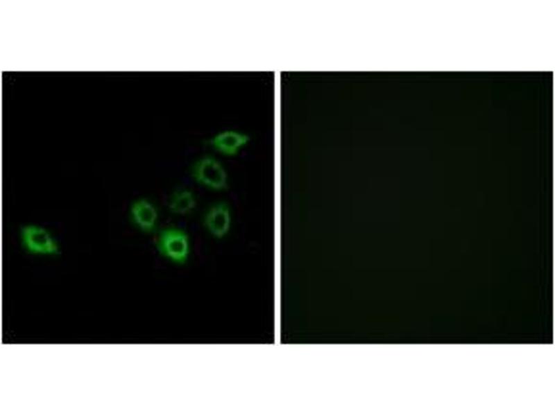 Olfactory receptors interact with odorant molecules in the nose, to initiate a neuronal response that triggers the perception of a smell. The olfactory receptor proteins are members of a large family of G-protein-coupled receptors (GPCR) arising from single coding-exon genes. Olfactory receptors share a 7-transmembrane domain structure with many neurotransmitter and hormone receptors and are responsible for the recognition and G protein-mediated transduction of odorant signals. The olfactory receptor gene family is the largest in the genome. The nomenclature assigned to the olfactory receptor genes and proteins for this organism is independent of other organisms. [provided by RefSeq, Jul 2008].
