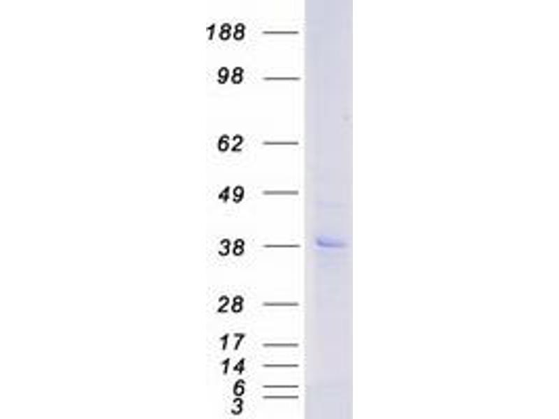 The purity of the protein is greater than 95 % as determined by SDS-PAGE and Coomassie blue staining.