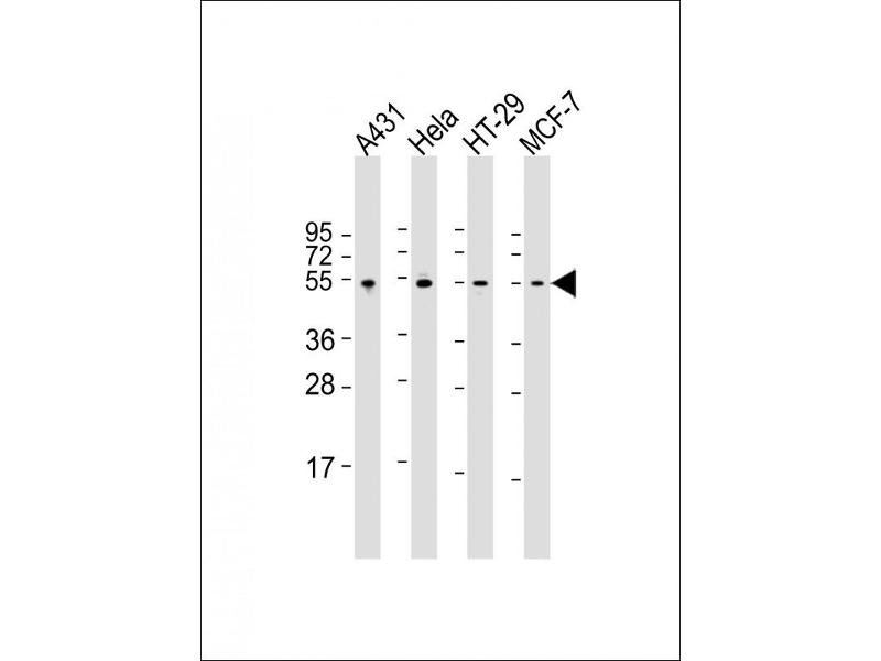 TP53 适用: 人, 大鼠, 犬, Cow, Pig, 兔, 马, 绵羊, 豚鼠 WB, IHC, ChIP 宿主: 兔 Polyclonal unconjugated