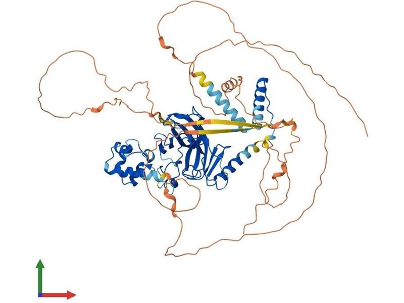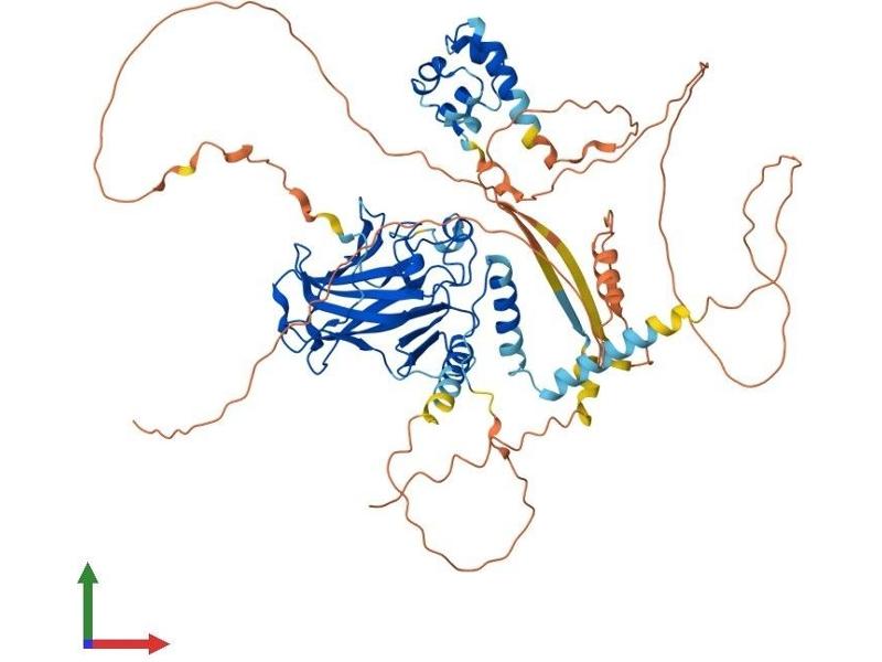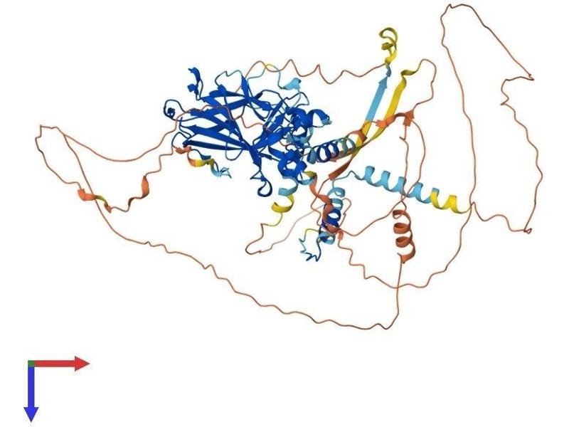 This gene encodes a member of the p53 family of transcription factors. An animal model, p63 -/- mice, has been useful in defining the role this protein plays in the development and maintenance of stratified epithelial tissues. p63 -/- mice have several developmental defects which include the lack of limbs and other tissues, such as teeth and mammary glands, which develop as a result of interactions between mesenchyme and epithelium. Mutations in this gene are associated with ectodermal dysplasia, and cleft lip/palate syndrome 3 (EEC3)\; split-hand/foot malformation 4 (SHFM4)\; ankyloblepharon-ectodermal defects-cleft lip/palate\; ADULT syndrome (acro-dermato-ungual-lacrimal-tooth)\; limb-mammary syndrome\; Rap-Hodgkin syndrome (RHS)\; and orofacial cleft 8. Both alternative splicing and the use of alternative promoters results in multiple transcript variants encoding different proteins. Many transcripts encoding different proteins have been reported but the biological validity and the full-length nature of these variants have not been determined. [provided by RefSeq, Jul 2008].