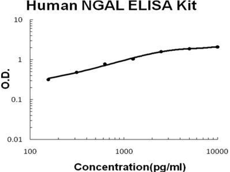 Background: Lipocalin-2(LCN2), also known as NGAL, is a protein associated with neutrophil gelatinase.1 The LCN2 gene is located at 9q34 and contains 7 exons.2 The 25-kD LCN2 protein is believed to bind small lipophilic substances such as bacteria-derived lipopolysaccharide(LPS) and formylpeptides and may function as a modulator of inflammation. NGAL tightly binds bacterial catecholate-type ferric siderophores through a cyclically permuted, hybrid electrostatic/cation-pi interaction and is a potent bacteriostatic agent in iron-limiting conditions.3 The primary LCN2 transcript is 3,696 nucleotides long, and the processed transcript is 809 nucleotides long.4 LCN2 expression in adult bone marrow, uterus, prostate, salivary gland, stomach, appendix, colon, trachea, and lung, and in fetal spleen and lung.The standard product used in this kit is recombinant human NGAL, consisting of 178 amino acids with the molecular mass of 22KDa.