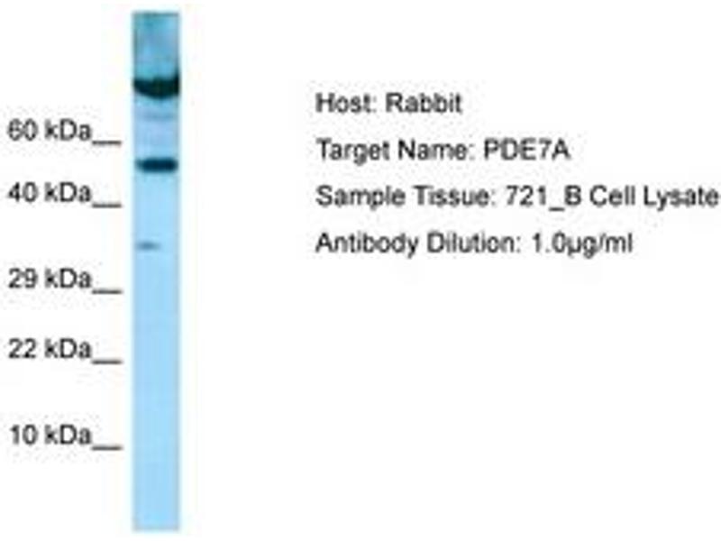 The protein encoded by this gene belongs to the cyclic nucleotide phosphodiesterase (PDE) family, and PDE7 subfamily. This PDE hydrolyzes the second messenger, cAMP, which is a regulator and mediator of a number of cellular responses to extracellular signals. Thus, by regulating the cellular concentration of cAMP, this protein plays a key role in many important physiological processes. Alternatively spliced transcript variants encoding different isoforms have been described for this gene. [provided by RefSeq, Jul 2011].