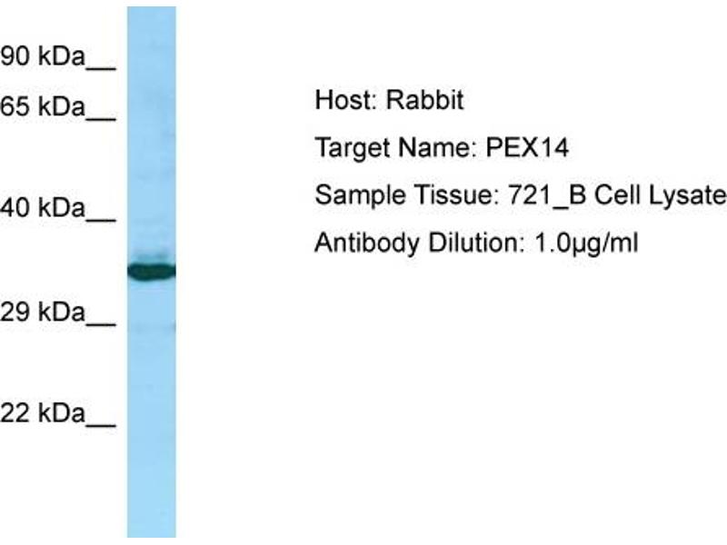 PEX14 适用: 人, 小鼠 WB, ELISA, FACS 宿主: 兔 Polyclonal Biotin