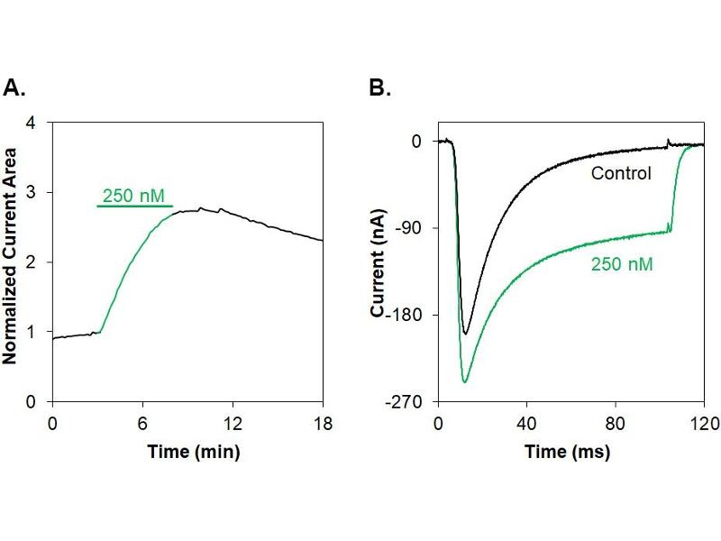 Delta-theraphotoxin-Hm1a, Delta-TRTX-Hm1a, Heteroscodratoxin-1, HmTx1, Kappa-theraphotoxin-Hm1a, Kappa-TRTX-Hm1a,Delta-theraphotoxin-Hm1a (Hm1a) is a peptide toxin originally isolated from Heteroscodra maculate tarantula venom. Initially described as a moderate-affinity KV4.1 blocker¹, later studies confirmed it primarily targets NaV1.1 voltage-gated sodium channels²,3. It interacts with extracellular loops connecting transmembrane segments 1-2 and 3-4 in domain IV voltage sensor of the channel to inhibit NaV1.1 fast inactivation2,3. Hm1a inhibits human NaV1.1 channel inactivation expressed in Xenopus oocytes with EC50 value of 38 ± 6 nM. Recent studies show Hm1a restores interneuron firing in Scn1a+/- mice, improving inhibition in Dravet Syndrome models⁴. Electrophysiology confirms it prolongs NaV1.1 activation with minimal effects on NaV1.2 and Na-1.6⁵,⁶. NaV1.1 channel is a therapeutic target for brain disorders, such as epilepsy, Alzheimer's disease, and autism. It also contributes to mechanical pain by regulating excitability in a specific subset of sensory neurons within the peripheral nervous system. Hm1a is a valuable tool for neuroscience and pharmacology research⁴-⁷.