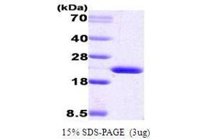 Cyclophilin B (also known as PPIB, peptidylpropyl isomerase B) is a cyclosporine-binding protein and is mainly located within the endoplasmic reticulum. It is associated with the secretory pathway and released in biological fluids. This protein can bind to cells derived from T- and B-lymphocytes, and may regulate cyclosporine A-mediated immunosuppression. Recombinant human cyclophilin B was expressed in E. coli and purified by using conventional chromatography techniques.