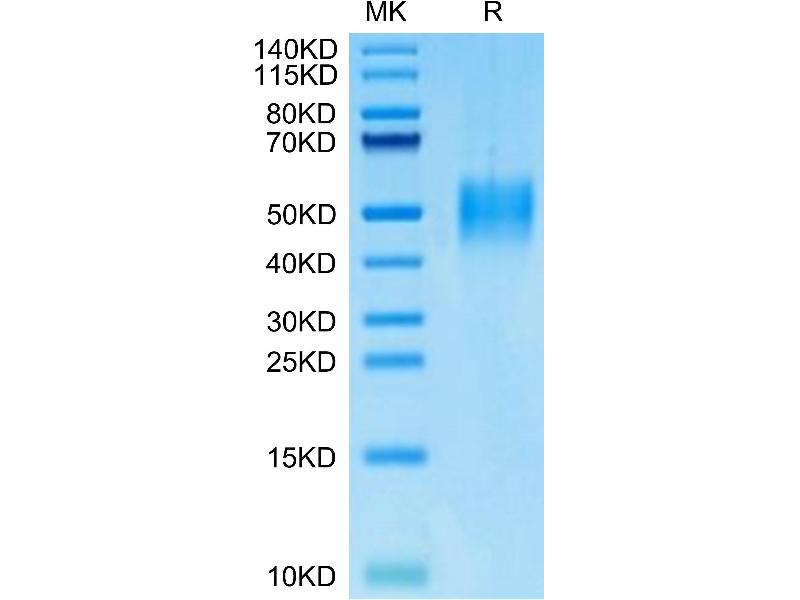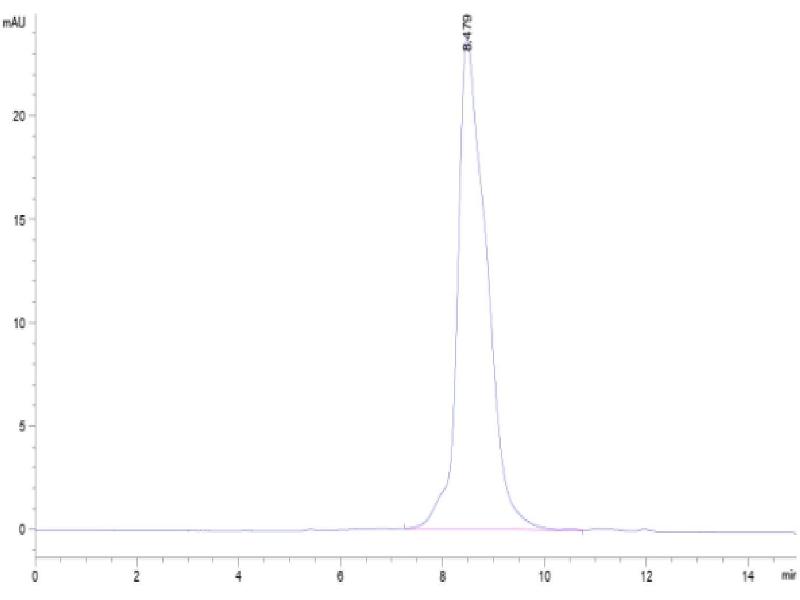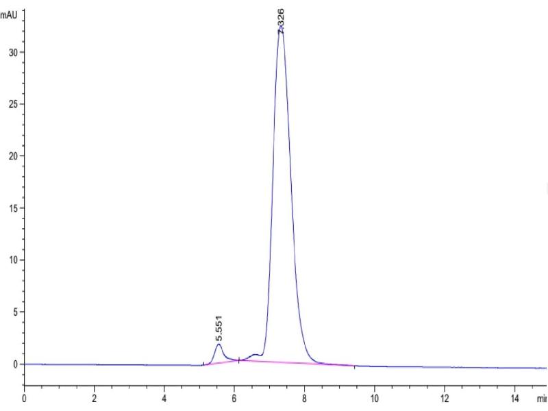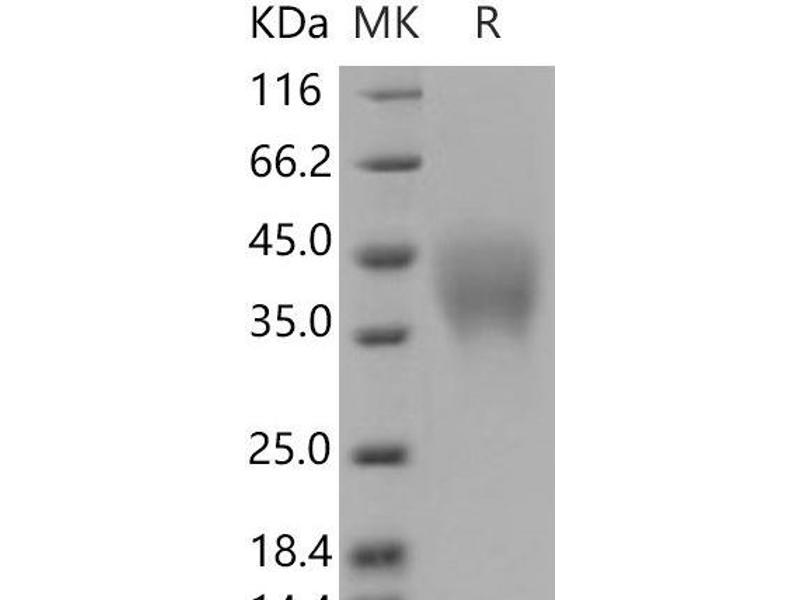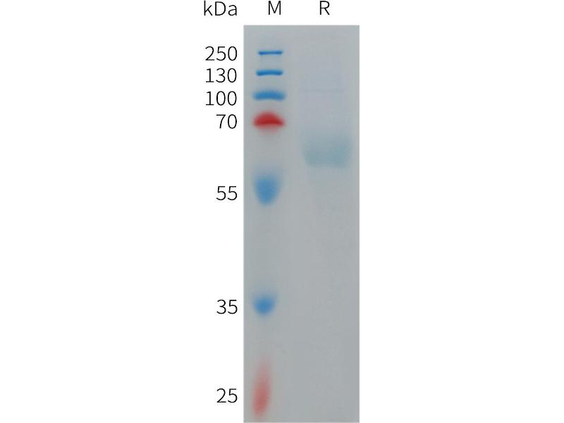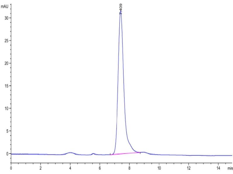 The purity of the protein is greater than 95 % as determined by SDS-PAGE and Coomassie blue staining.