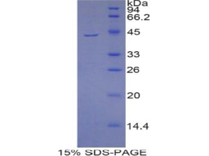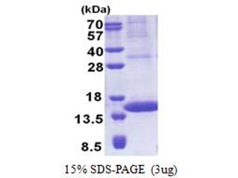 The purity of the protein is greater than 95 % as determined by SDS-PAGE and Coomassie blue staining.