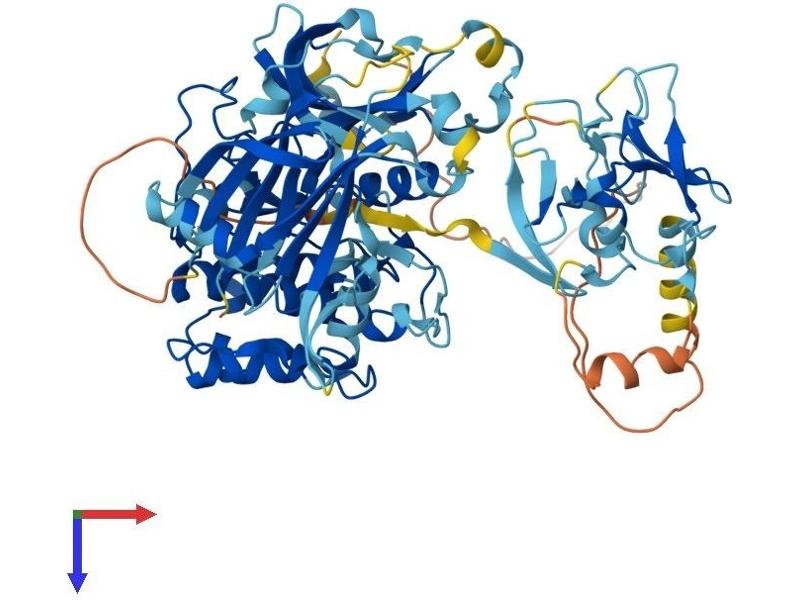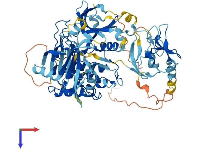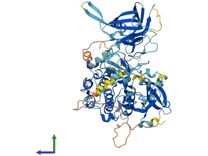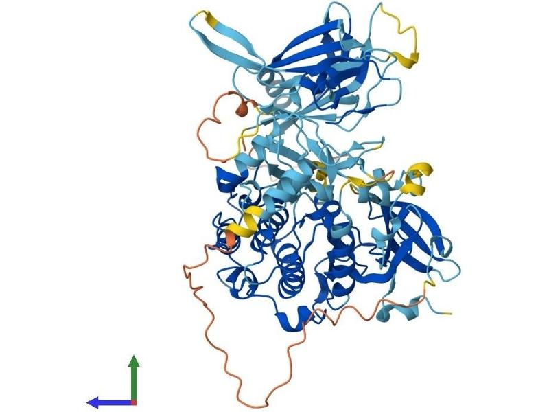 Protein kinase C (PKC) is a family of serine- and threonine-specific protein kinases that can be activated by calcium and the second messenger diacylglycerol. PKC family members phosphorylate a wide variety of protein targets and are known to be involved in diverse cellular signaling pathways. PKC family members also serve as major receptors for phorbol esters, a class of tumor promoters. Each member of the PKC family has a specific expression profile and is believed to play distinct roles in cells. The protein encoded by this gene is one of the PKC family members. Studies both in human and mice demonstrate that this kinase is involved in B cell signaling and in the regulation of growth, apoptosis, and differentiation of a variety of cell types. Alternatively spliced transcript variants encoding the same protein have been observed. [provided by RefSeq, Jul 2008].