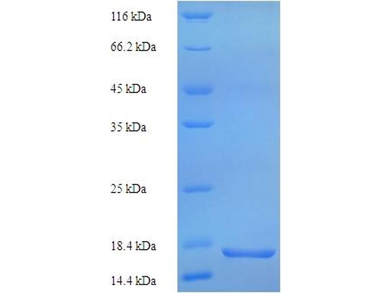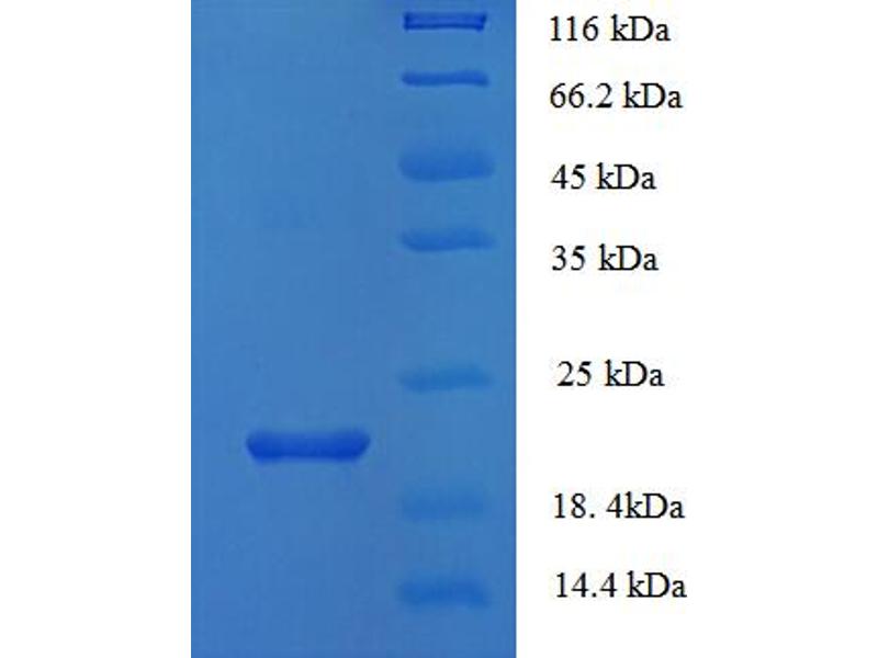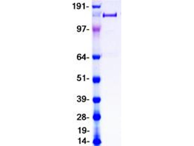 The purity of the protein is greater than 85 % as determined by SDS-PAGE and Coomassie blue staining.