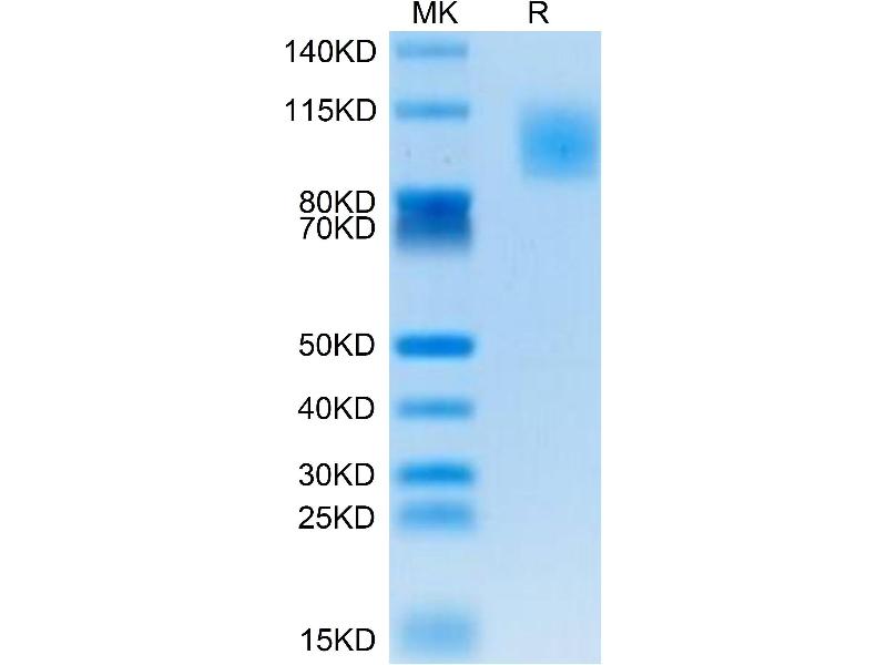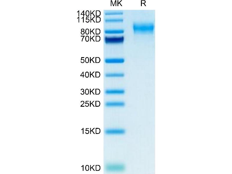 The purity of the protein is greater than 85 % as determined by SDS-PAGE and Coomassie blue staining.