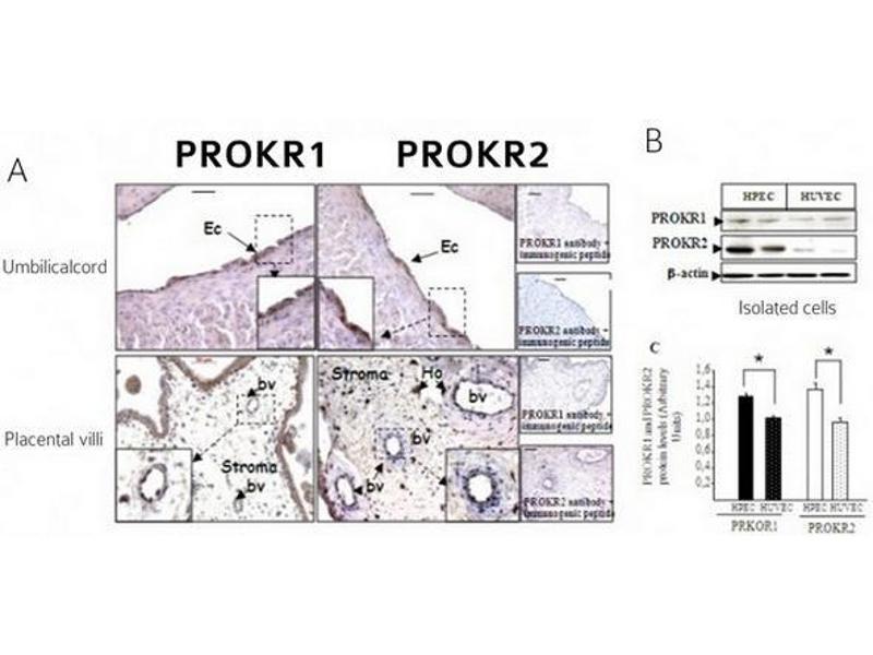 : "Placental expression of EG-VEGF and its receptors PKR1 (prokineticin receptor-1) and PKR2 throughout mouse gestation." in: Placenta, Vol. 28, Issue 10, pp. 1049-58, (2007) (PubMed).