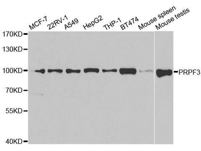 The removal of introns from nuclear pre-mRNAs occurs on complexes called spliceosomes, which are made up of 4 small nuclear ribonucleoprotein (snRNP) particles and an undefined number of transiently associated splicing factors. This gene product is one of several proteins that associate with U4 and U6 snRNPs. Mutations in this gene are associated with retinitis pigmentosa-18. [provided by RefSeq, Jul 2008].