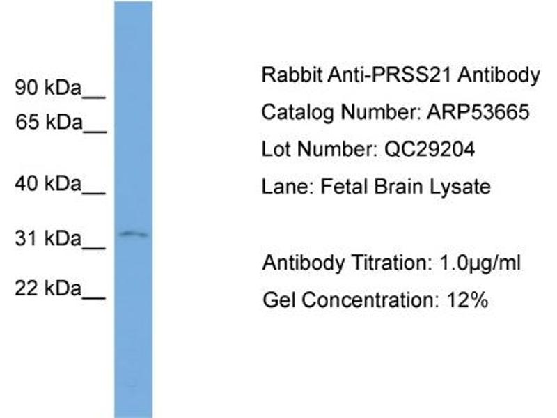 This gene encodes a cell-surface anchored serine protease, which is a member of the trypsin family of serine proteases. The encoded protein is predicted to be active on peptide linkages involving the carboxyl group of lysine or arginine. The encoded protein localizes to the cytoplasm and the plasma membrane of premeiotic testicular germ cells and may be involved in progression of testicular tumors of germ cell origin. Alternatively spliced transcript variants encoding multiple isoforms have been observed for this gene. [provided by RefSeq, Jul 2012].
