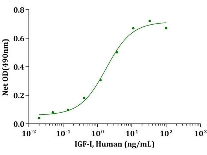 Insulin-like growth factor I (IGF-I) also known as Somatamedin C is a hormone similar in molecular structure to insulin. Human IGF-I has two isoforms (IGF-IA and IGF-IB) which is differentially expressed by various tissues. Mature human IGF-I respectively shares 94 % and 96 % aa sequence identity with mouse and rat IGF-I. Both IGF-I and IGF-II (another ligand of IGF) can signal through the IGF-I receptor (IGFIR), but IGF-II can alone bind the IGF-II receptor (IGFIIR/ Mannose-6-phosphate receptor). IGF-I plays an important role in childhood growth and continues to have anabolic effects in adults.