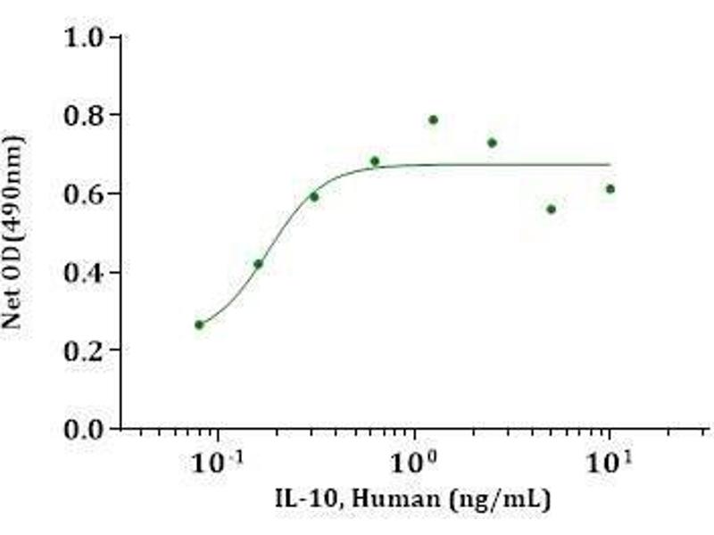 Interleukin-10 (IL-10), initially known as Cytokine Synthesis Inhibitory Factor (CSIF), belongs to the IL-10 family and shares more than 80 % sequence homology with Epstein-Barr Virus protein BCRFI. It is produced by many immune cells, such as T-cells, macrophages, mast cells, and dendritic cells. It is usually secreted as a homodimer and, upon binding to its receptor, inhibits the synthesis of a number of cytokines, including IFN-gamma, IL-2, IL-3, TNF and GM-CSF produced by activated macrophages and Th2 cells. It also displays ability to suppress Antigen-Presenting Cell (APC) function. The net effect of Interleukin-10 appears to be inhibitory, however, stimulatory effects, such as stimulation of B cell maturation and antibody production, are also reported.