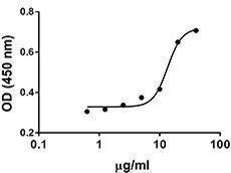 The 215 amino acid recombinant protein has a predicted molecular mass of approximately 24.8 kDa. The DTT-reduced and non-reduced protein migrate at approximately 38 and 40 kDa respectively by SDS-PAGE. The predicted N-terminal amino acid is Met