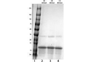 - The molecular weight of the recombinant histone is 15,299 Daltons.