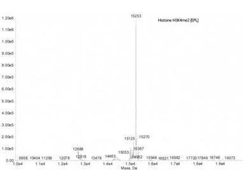 - Recombinant Histone H3 dimethyl Lys4 (H3K4me2) proteins are generated using expressed protein ligation (EPL) technology. Truncated human Histone H3.2 is produced in E. coli and purified using FPLC. The purified protein is subsequently ligated to a N-terminal histone tail peptide containing dimethyl lysine 4 via a native peptide bond. The full-length protein is then repurified prior to lyophilization. Protein concentration was determined using the molar extinction coefficient for Histone H3 and absorbance at 280nm. The recombinant histone is >98 % pure by SDS-PAGE and confirmed by high-resolution ESI-TOF mass spectrometry. The molecular weight of the recombinant histone is 15,253 Daltons.