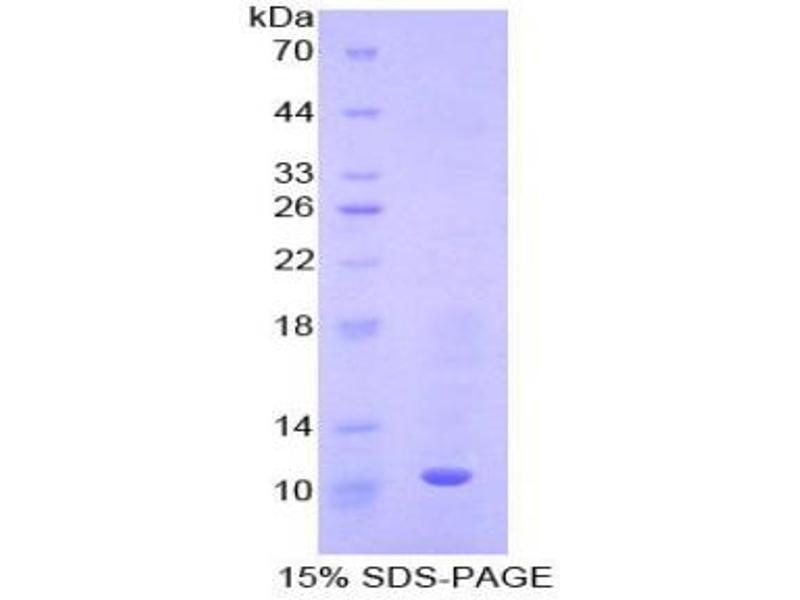 10.8 kDa (Predicted Molecular Mass), 15 kDa (Accurate Molecular Mass as determined by SDS-PAGE). Possible reasons why the actual band size differs from the predicted band size: