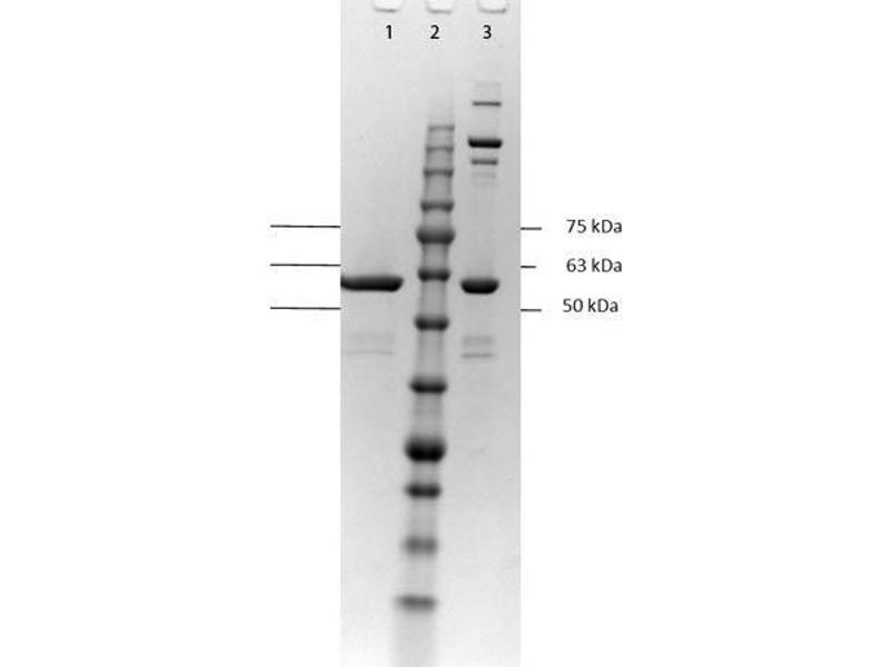 Application Note: DbpA is suitable as a control in immunological assays. Specific conditions for reactivity should be optimized by the end user. Expect bands at 60.9 kDa for DbpA-MBP, (18.5 kDa for DbpA and 42.4 kDa for MBP) in size corresponding to DbpA by Western blotting in the appropriate cell lysate or extract. Decorin Binding Protein A has been tested in SDS-page and western blot.
