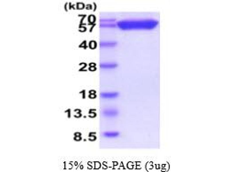 - CD200, also known as OX-2 membrane glycoprotein isoform a, is a transmembrane immuno- regulatory protein that belongs to the immunoglobulin superfamily. Its receptor (CD200R) is restricted primarily to mast cells, basophils, macrophages, and dendritic cells, which suggests myeloid cell regulation as the major function of CD200. Elevated expression of this protein has been reported to be associated with poor prognosis in a number of human malignancies. In addition, it also plays an important role in prevention of graft rejection, autoimmune diseases and spontaneous abortion. Recombinant human CD200 protein, fused to hIgG-His-tag at C-terminus, was expressed in insect cell and purified by using conventional chromatography techniques.