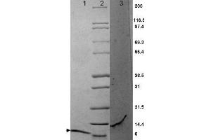 Application Note: MIP-3α protein has been tested by SDS-PAGE and is suitable as a control for polyclonal or monoclonal anti-MIP-3α in immunological assays.