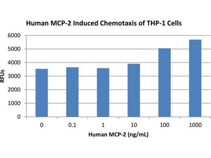 Application Note: Monocyte Chemotactic Protein-2 Recombinant Protein has been tested by SDS-PAGE and biological activity and is suitable as a control for polyclonal or monoclonal anti-Monocyte Chemotactic Protein-2 in immunological assays.