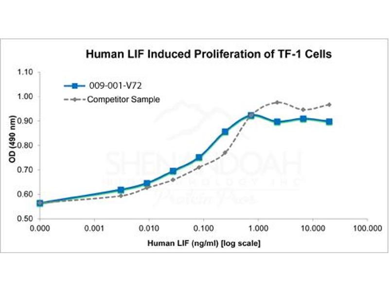 Application Note: Leukemia Inhibitory Factor Recombinant Protein has been tested by biological activity and is suitable as a control for polyclonal or monoclonal anti-Leukemia Inhibitory Factor in immunological assays.