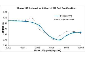 Background: Mouse Leukemia Inhibitory Factor (LIF) is member of the IL-6 family and is made by a variety of tissues. LIF signals through receptors gp190 (LIFR) and gp130 to activate STAT3 which ultimately promotes mouse embryonic stem cell self-renewal and pluripotency of long term cultures. This activity is similar to that attributed to FGF-basic (FGF-2) for human embryonic stem cells. Recombinant mouse LIF is a non-glycosylated protein, containing 181 amino acids, with a molecular weight of 20 kDa.