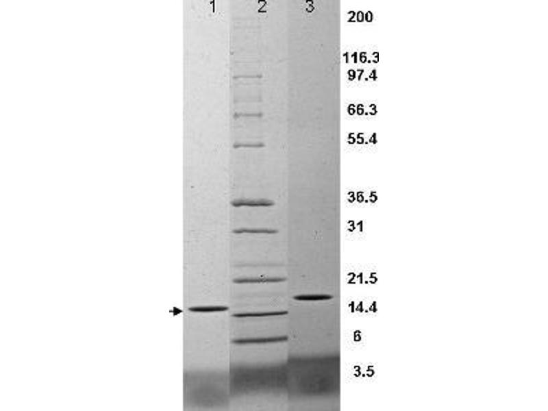 Application Note: TNFα protein has been tested by SDS-PAGE and is suitable as a control for polyclonal or monoclonal anti-TNFα in immunological assays.