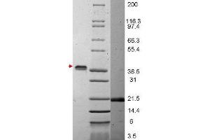 - Purity was determined to be greater than 95% as determined by analysis by RP-HPLC and by reducing and non-reducing SDS-PAGE against known standard.