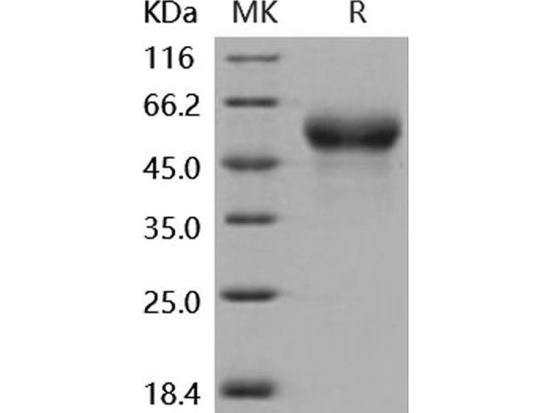 - 1. Measured by its binding ability in a functional ELISA. Immobilized human FCN1 at 10 μg/mL can bind biotinylated recombinant mouse Fetuin-A with a linear range of 16-2000 ng/ml.2. Measured by its ability to inhibit trypsin cleavage of a fluorogenic peptide substrate, Mca-RPKPVE-Nval-WRK(Dnp)-NH2, AnaSpec, Catalog # 27114. The IC50 value is <200 nM.