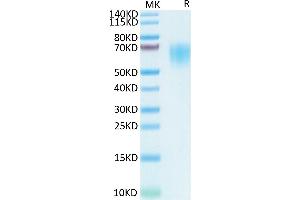 - 35 kDa. Due to glycosylation, the protein migrates to 55-70 kDa based on Tris-Bis PAGE result.