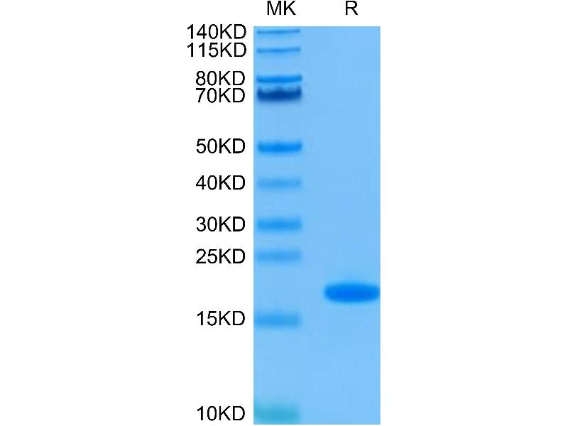 Centrifuge the tube before opening. Reconstituting to a concentration more than 100 μg/mL is recommended. Dissolve the lyophilized protein in distilled water.