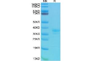 - 25.7 kDa. Due to glycosylation, the protein migrates to 30-40 kDa based on Tris-Bis PAGE result.