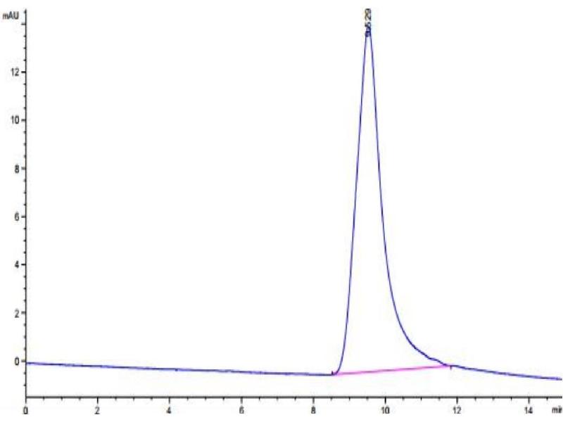 23.05 kDa. Due to glycosylation, the protein migrates to 30-36 kDa based on Tris-Bis PAGE result.