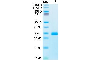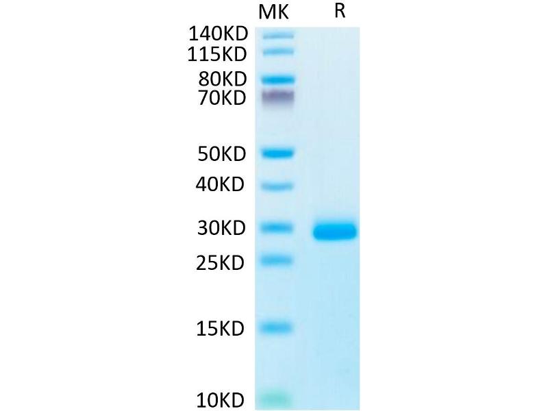Centrifuge the tube before opening. Reconstituting to a concentration more than 100 μg/mL is recommended. Dissolve the lyophilized protein in distilled water.