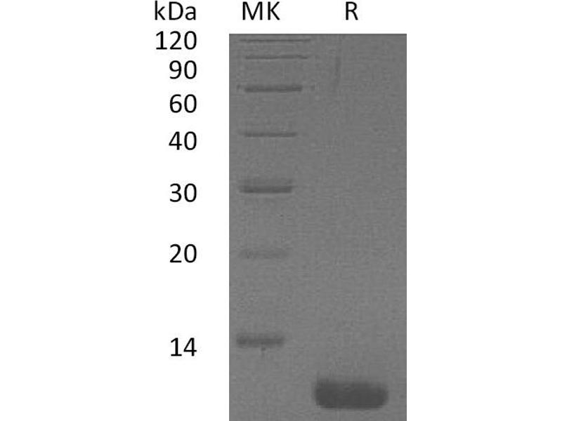 Chemokine (C-C Motif) Ligand 1 (CCL1) is a small glycoprotein secreted by activated T cells, which play a central role during immunoregulatory and inflammaion processes. Human CCL1 has been assumed to be a homologue of the mouse TCA3. While the two proteins share only approximately 42 % amino acid sequence identity, both chemokines contain an extra pair of cysteine residues not found in most other chemokines. CCL1 attracts monocytes, NK cells, and immature B cells and dendritic cells by interacting with cell surface chemokine receptor CCR8. CCL1 is identified as a potent inhibitor of HIV-1 envelope-mediated cell-cell fusion and virus infection.