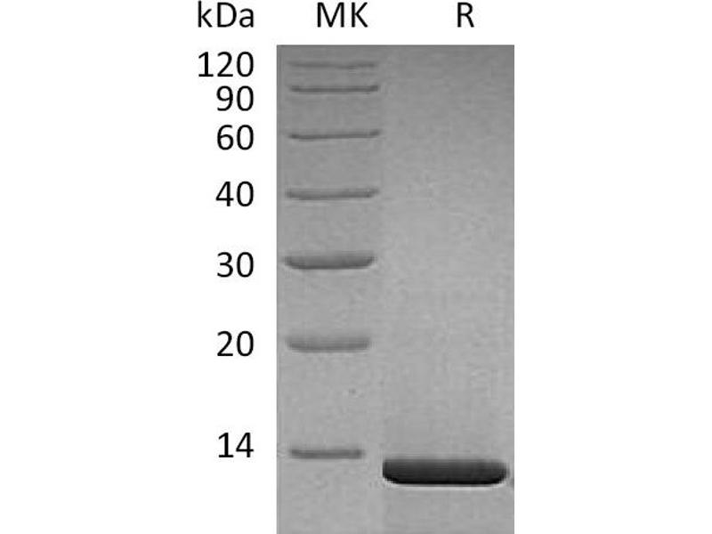 Human β-Nerve Growth Factor (β-NGF) was initially isolated in the mouse submandibular gland. It is composed of three non-covalently linked subunits a, β, and γ, it exhibits all the biological activities ascribed to NGF. It is structurally related to BDNF, NT-3 and NT-4 and belongs to the cysteine-knot family of growth factors that assume stable dimeric structures. Β-NGF is a neurotrophic factor that signals through its receptor β-NGF, and plays a crucial role in the development and preservation of the sensory and sympathetic nervous systems. Β-NGF also acts as a growth and differentiation factor for B lymphocytes and enhances B-cell survival. These results suggest that β-NGF is a pleiotropic cytokine, which in addition to its neurotropic activities may have an important role in the regulation of the immune system. Human β-NGF shares 90 % sequence similarity with mouse protein and shows cross-species reactivity. -