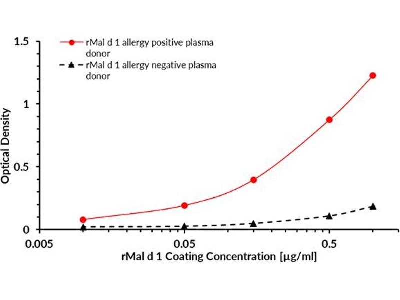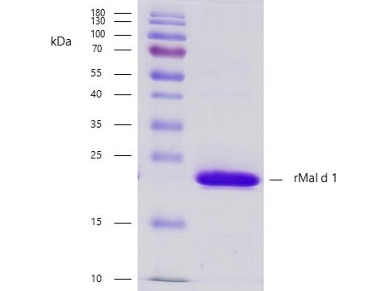 Recombinant protein rMal d 1 is expressed in Escherichia coli. DNA sequence encoding 180 AAs was fused with Strep-tag at the N-terminus. A calculated molecular mass of recombinant protein is 19,9 kDa.