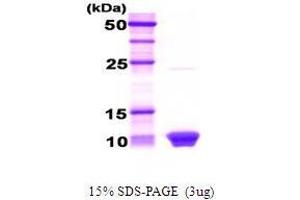 Heat shock factor binding protein 1 (HSBP1) is a 76 amino acid protein that binds to heat shock factor 1(HSF1), which is a transcription factor involved in the HS response. HSBP1 is nuclear-localized and interacts with the active trimeric state of HSF1 to negatively regulated HSF1 DNA-binding activity. This protein was overexpressed in E. coli and was purified to apparent homogeneity by using conventional column chromatography techniques.