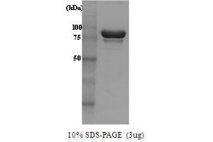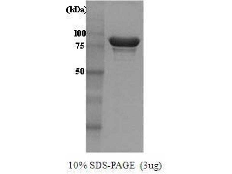 Hsp104 is a molecular chaperone required for stress tolerance and for maintenance of [psi(+)] prions in the budding yeast Saccharomyces cerevisiae. Hsp104 can protect yeast cells against high temperature and high concentration of ethanol but mutation studies have shown this protein is not required for normal growth. Hsp104 was cloned into an E. coli expression vector and was purified to apparent homogeneity by using conventional column chromatography techniques. Alternative Names: HSP-104 protein, HSP 104, Hsp 104, Heat shock protein 104 protein, HSP 104 protein, HSP-104, HSP104, Heat shock protein 104 L0948 protein