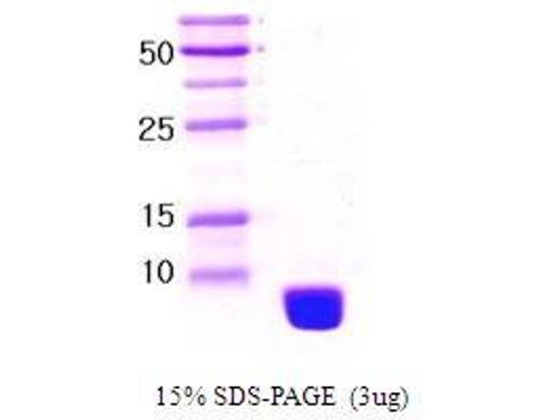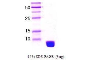 Ubiquitin is a small protein that is composed of 76 amino acids and its sequence is highly conserved throughout evolution from invertebrates to mammals. In the cytoplasm, ubiquitin is involved in ATP-dependent nonlysomal proteolysis of various proteins. In the nucleus, ubiquitin is conjugated to histone 2A and may play a role in regulation of chromatin structure and/or regulation of transcriptional activity. Ubiquitin (76 amino acids) was overexpressed in E. coli and purified by using conventional chromatography techniques.