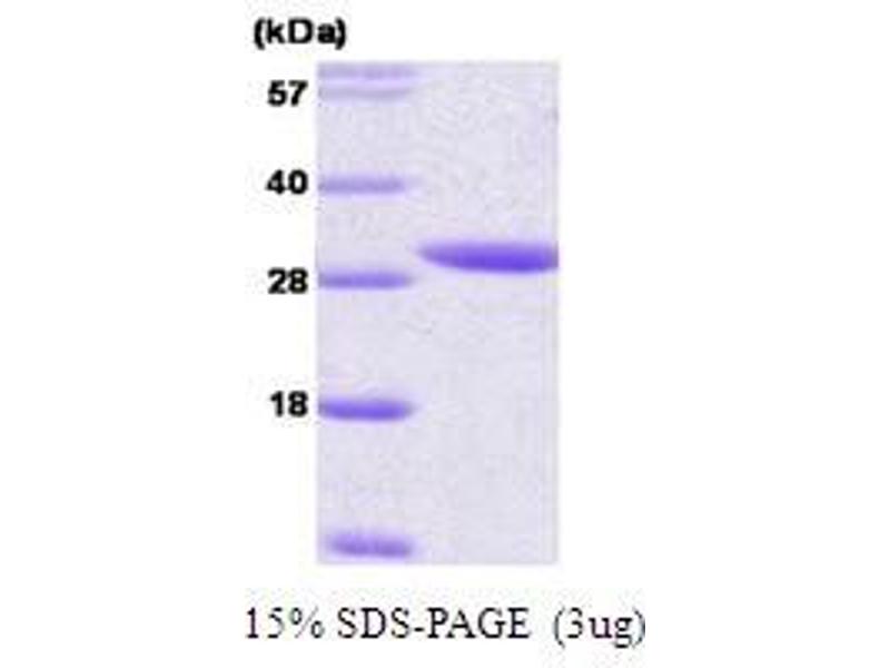 The 14-3-3 family of proteins plays a key regulatory role in signal transduction, checkpoint control, apoptotic and nutrient-sensing pathways. 14-3-3 proteins are highly conserved and ubiquitously expressed. There are at least seven isoforms, beta, gamma, epsilon,sigma, zeta, tau and eta that have been identified in mammals. The 14-3-3 epsilon, a subtype of the 14-3-3 family of proteins, was thought to be brain and neuron-specific. It has been shown to interact with CDC25 phosphatases, RAF1 and IRS1 proteins, suggesting its role in diverse biochemical activities related to signal transduction, such as cell division and regulation of insulin sensitivity. It has also been implicated in the pathogenesis of small cell lung cancer. Recombinant human 14-3-3 epsilon was expressed in E. coli and purified by using conventional chromatography techniques.